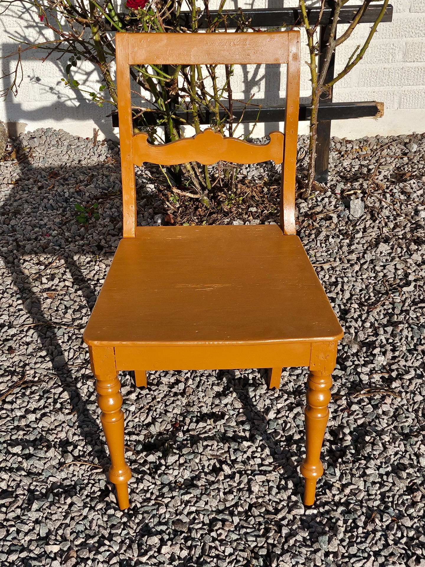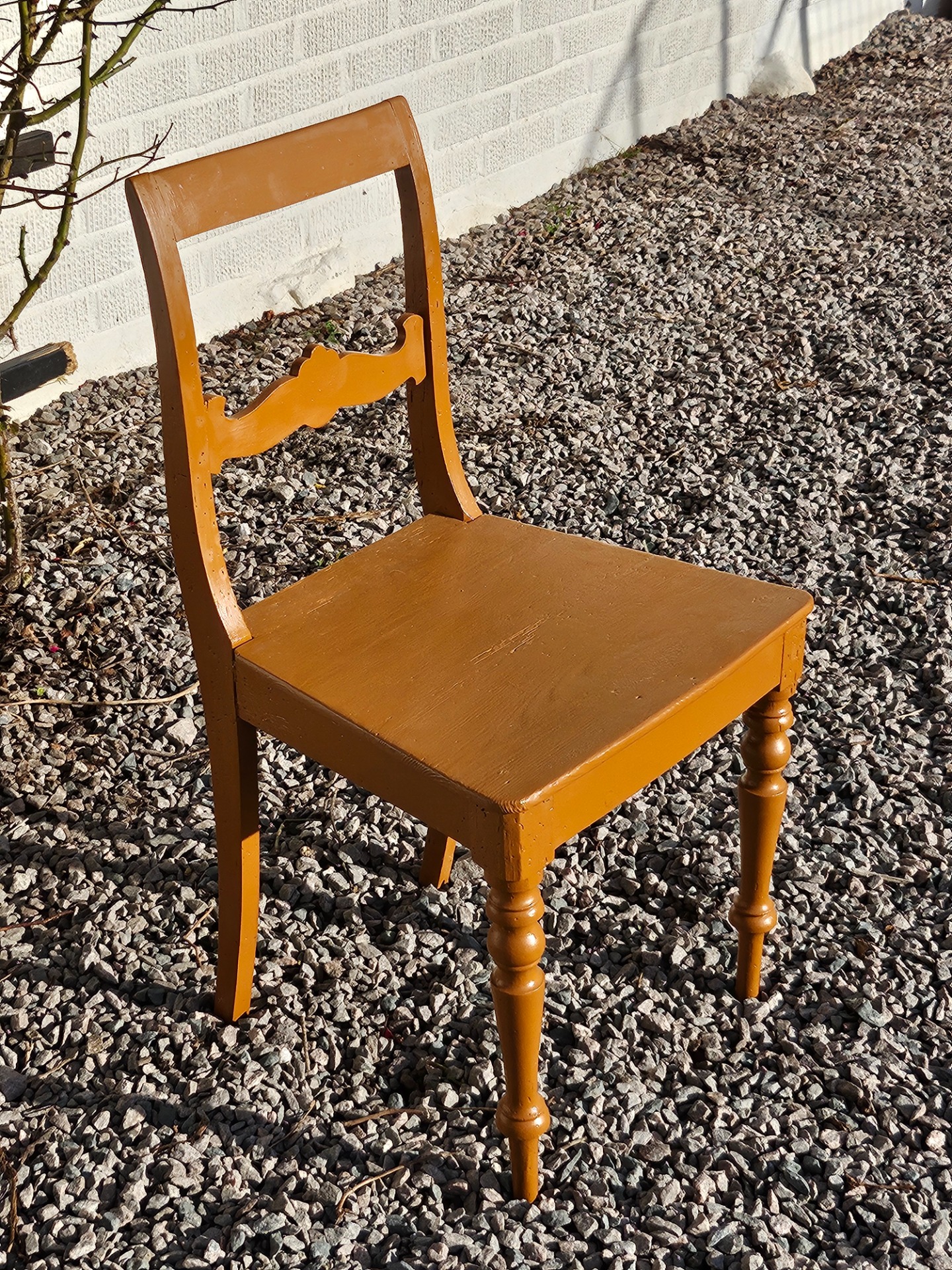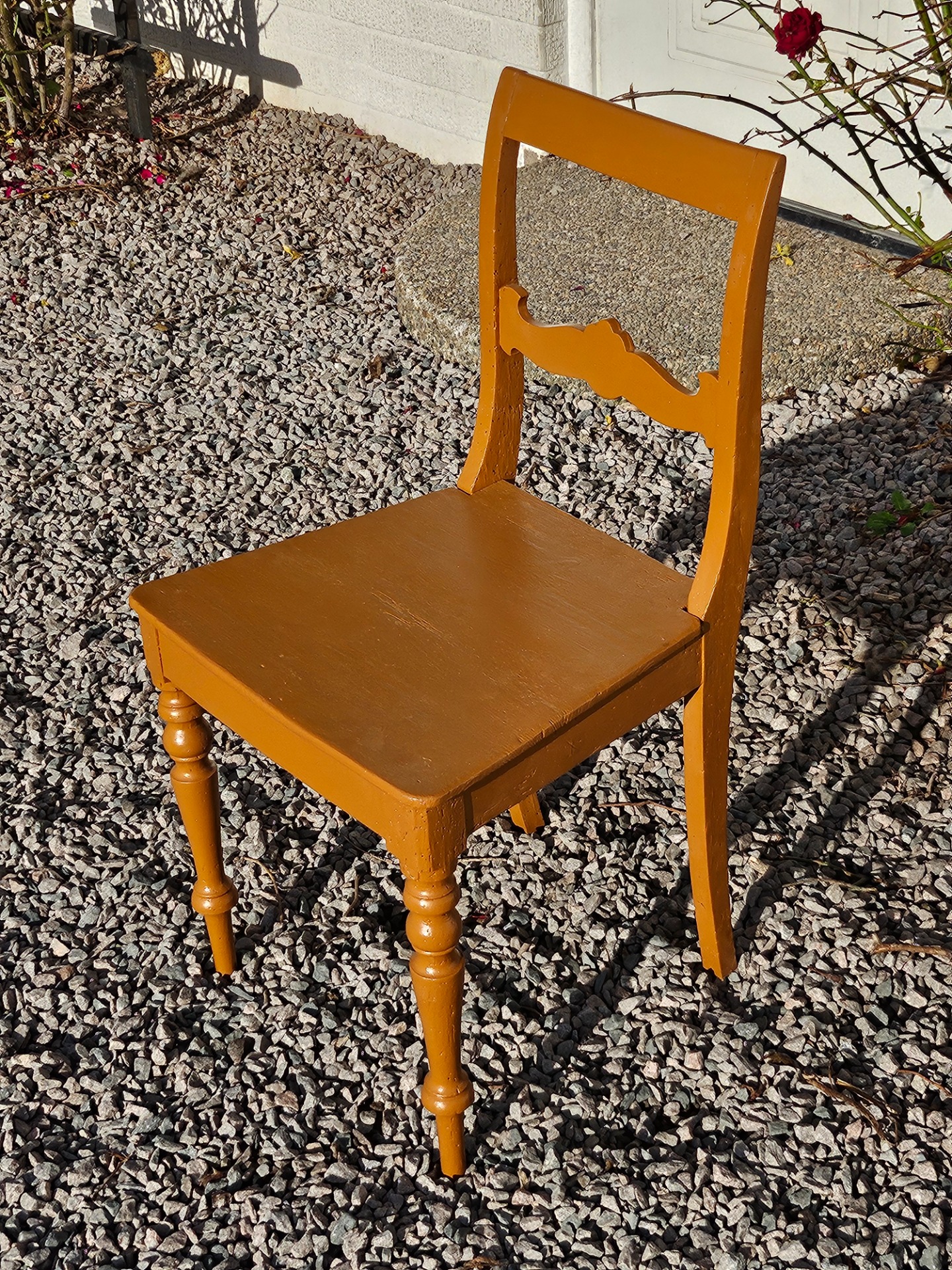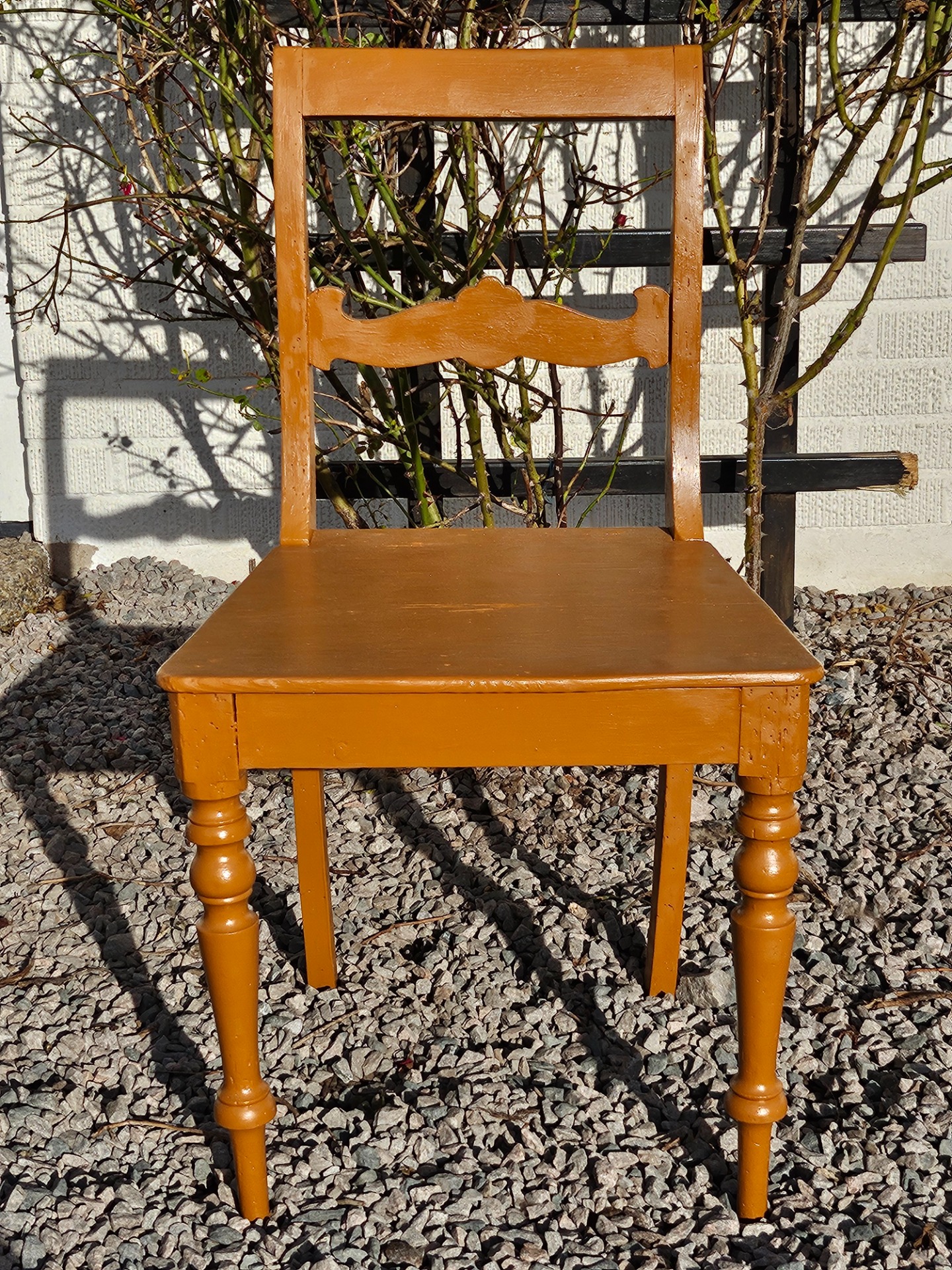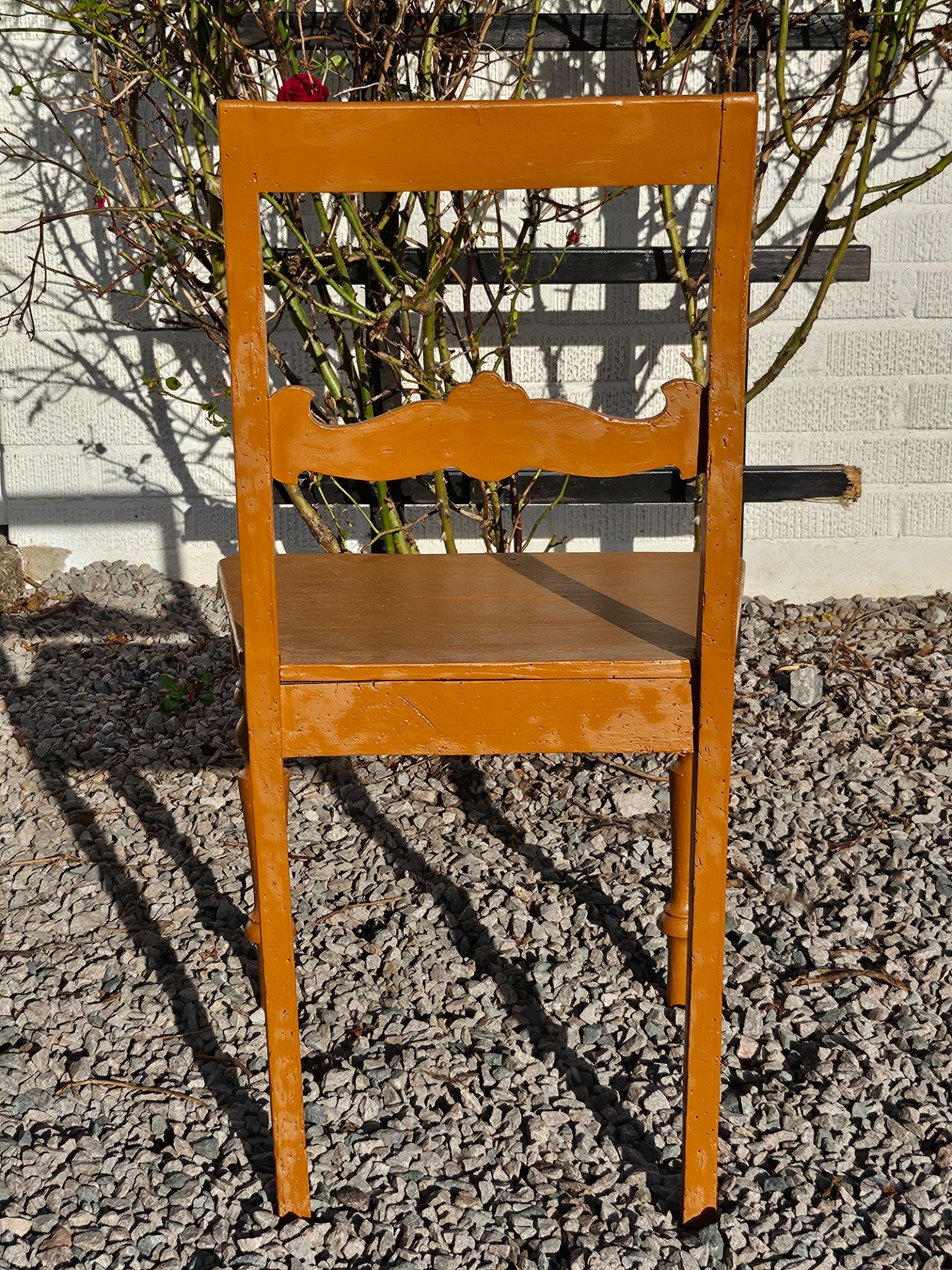 Allmogestol 1880-t handmålad med linoljefärg från Ottossons färgmakeri i kulören havannaorange.
