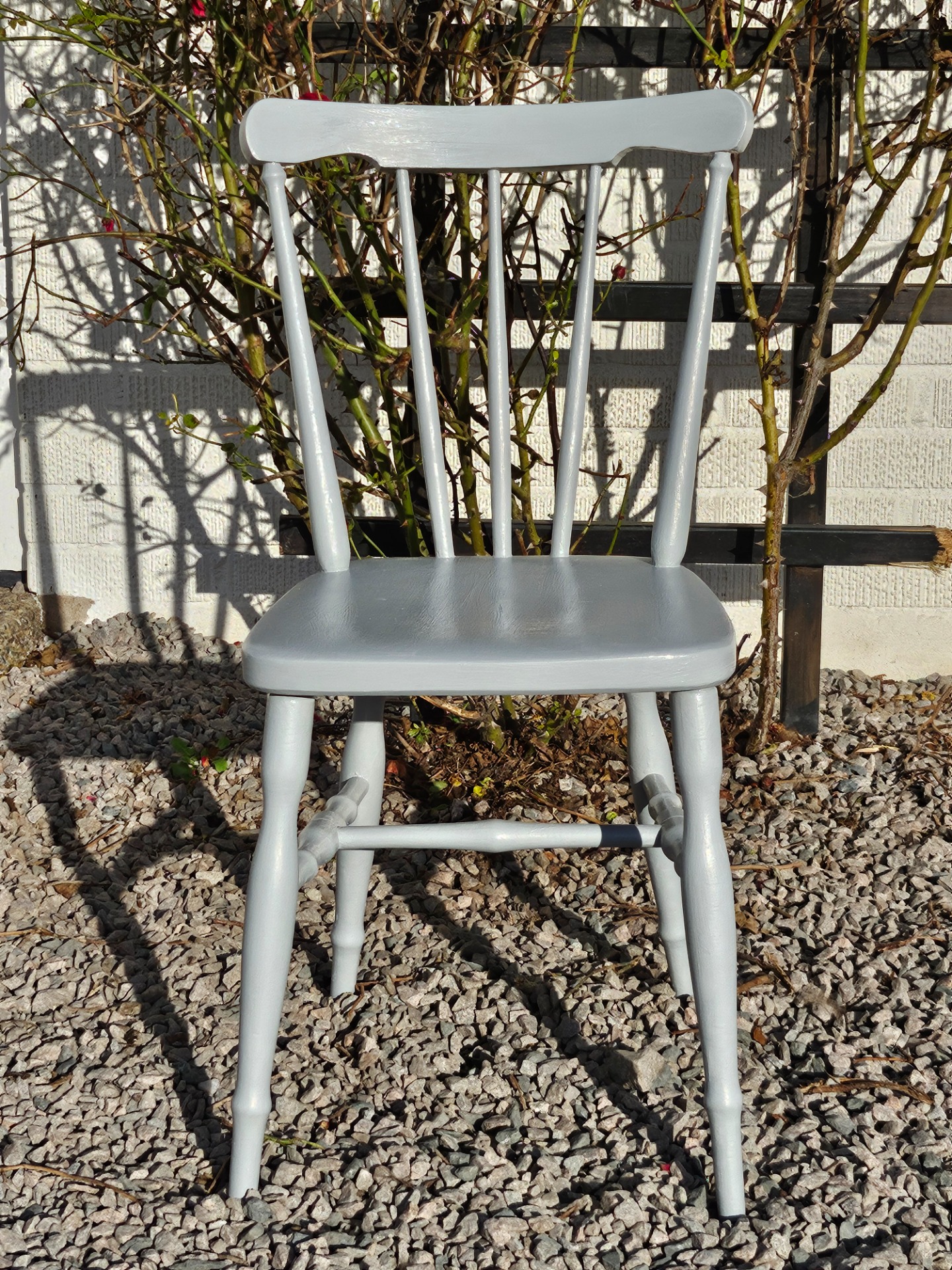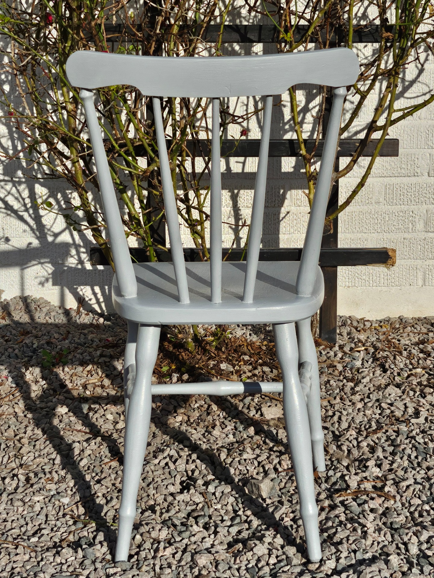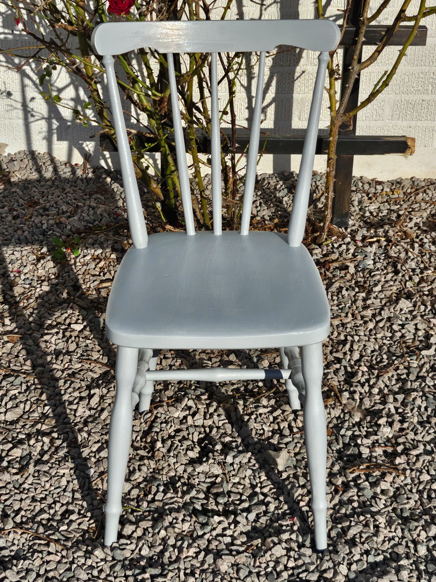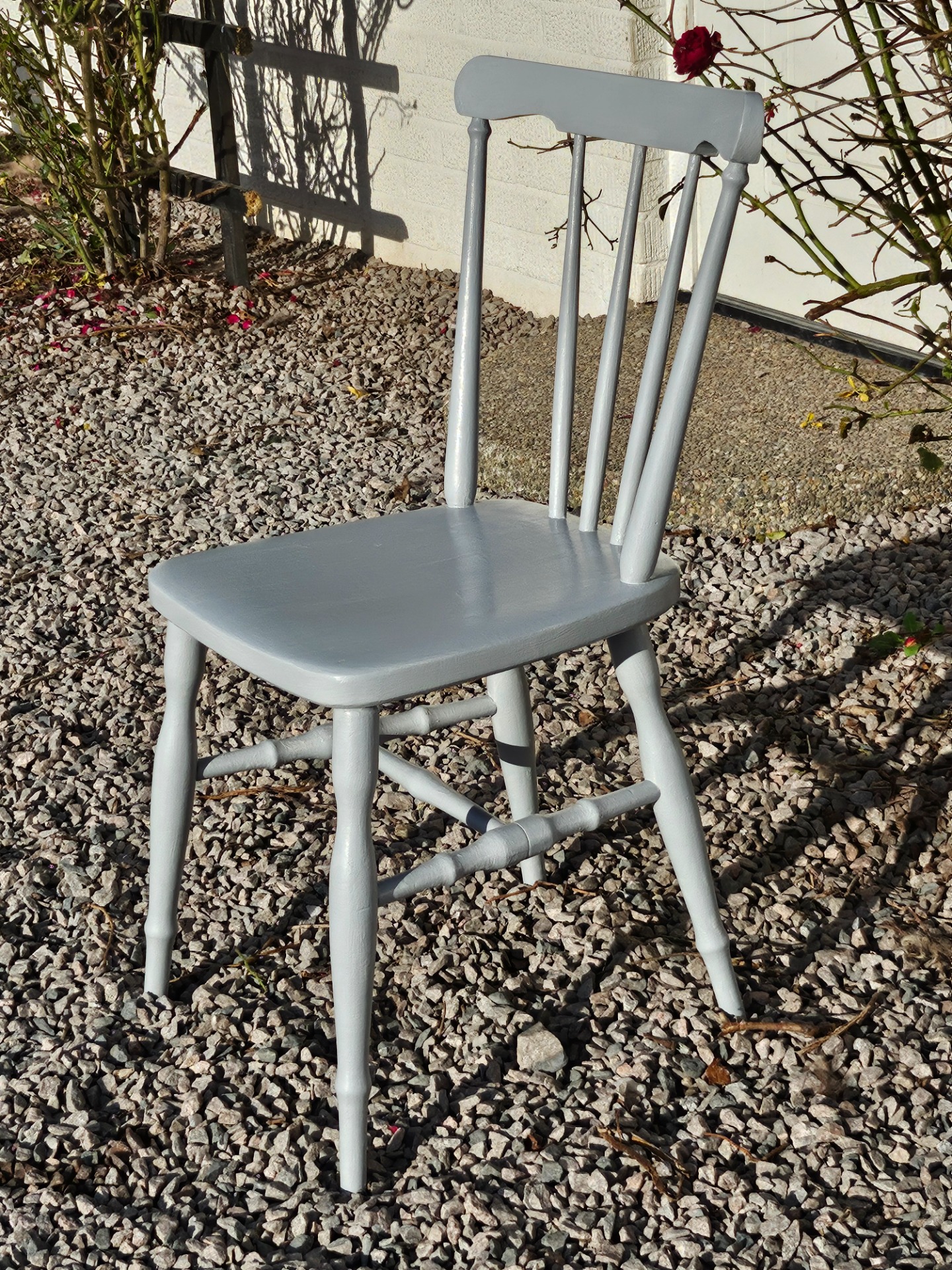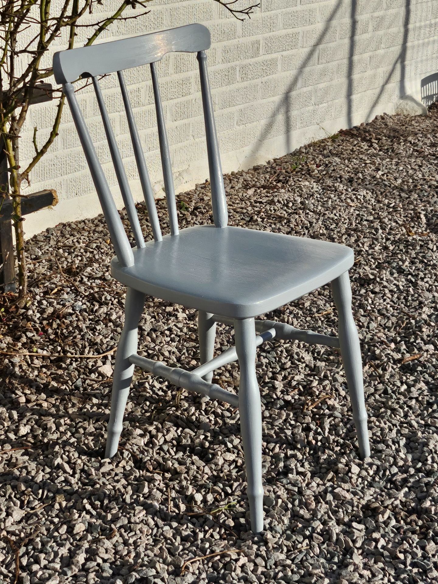 Pinnstol cafestol 1880-t handmålad med linoljefärg från Ottossons färgmakeri i kulören mellangrå.