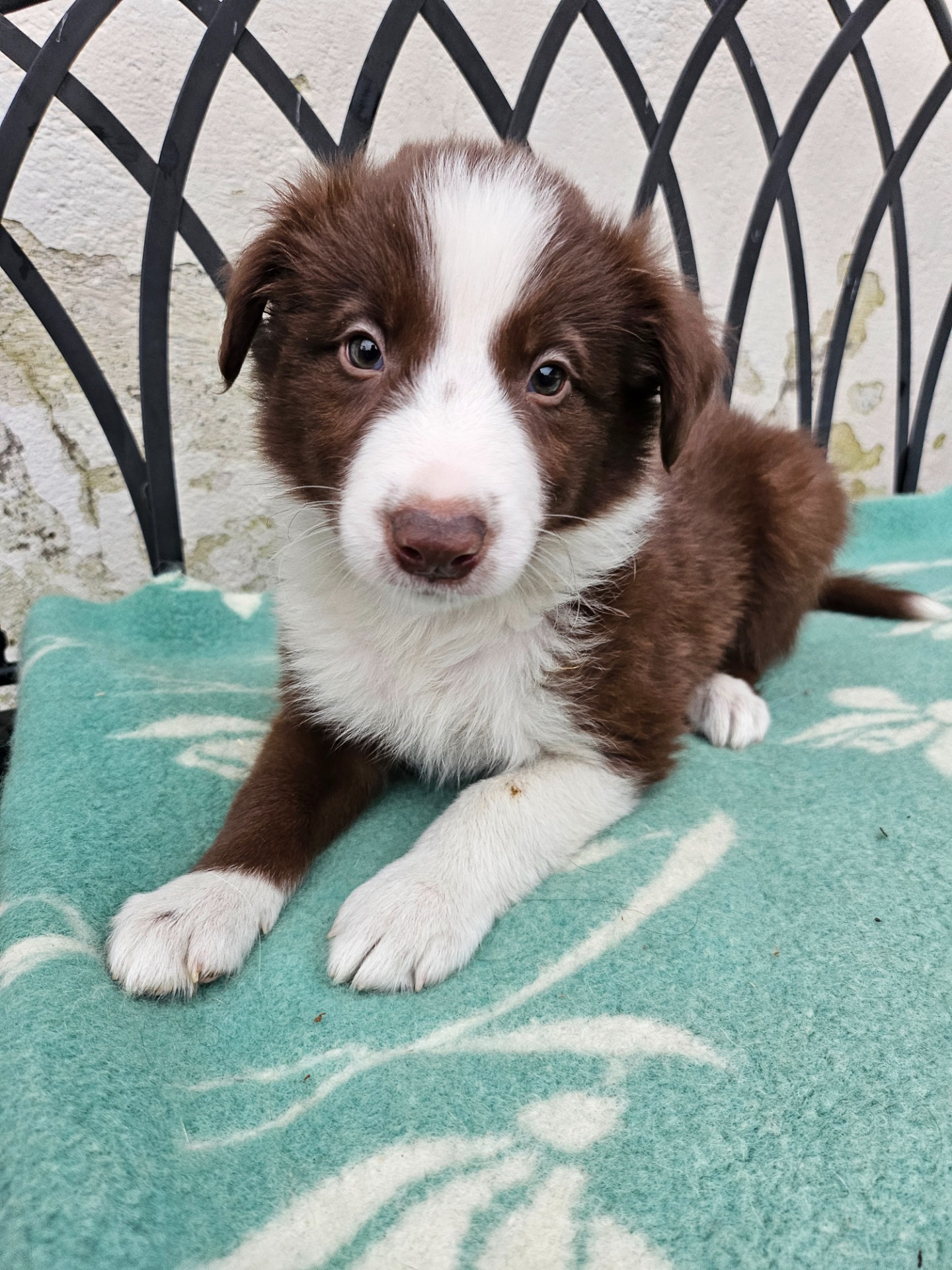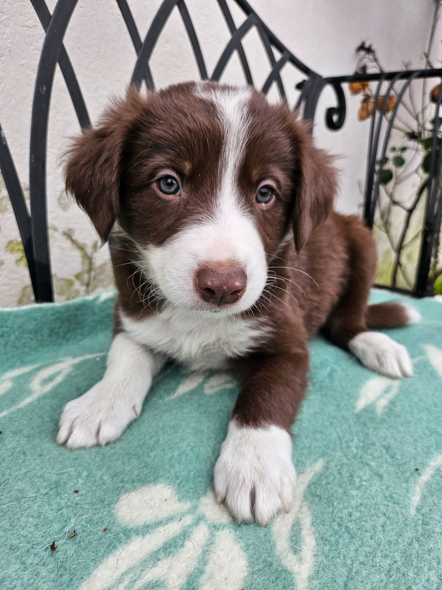 Junior är en choklad/vit långhårig Border Collie hane importerad från Tyskland-24 med stamtavla. Hans föräldrar är från Sportlinjer, han är vår familjehund och avelshane. Junior är mycket snäll och lättlärd, busar helst med Saga och Blondie hela dagarna. Vi kommer träna lydnad och agility med honom. Junior bär på choklad, svart/vit och trefärgat anlag. Junior är pappa till en kull.
